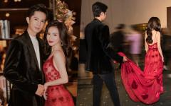Gặp khó khăn khi di chuyển, Huỳnh Phương nâng váy, dìu Sĩ Thanh cẩn thận trên thảm đỏ